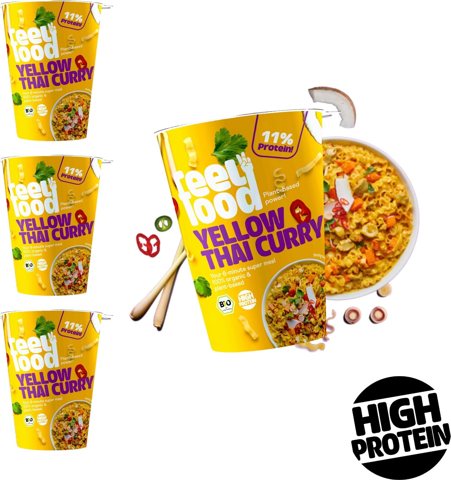 Feel Food BIO Instant Lunch - Yellow Thai Curry, 4 Stk