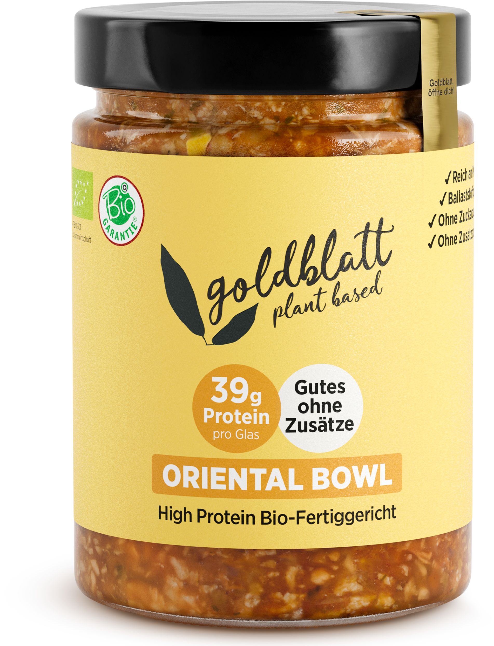 Discover Goldblatt High Protein organic dishes: the perfect solution for anyone who wants to eat quickly and consciously when life becomes stressful. What makes the dishes so special: each dish is a true powerhouse and provides up to 39 g of plant-based protein per jar.